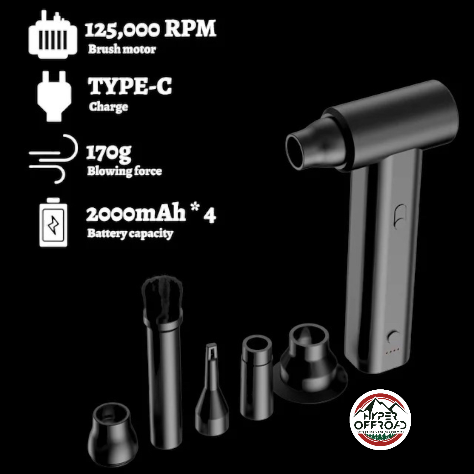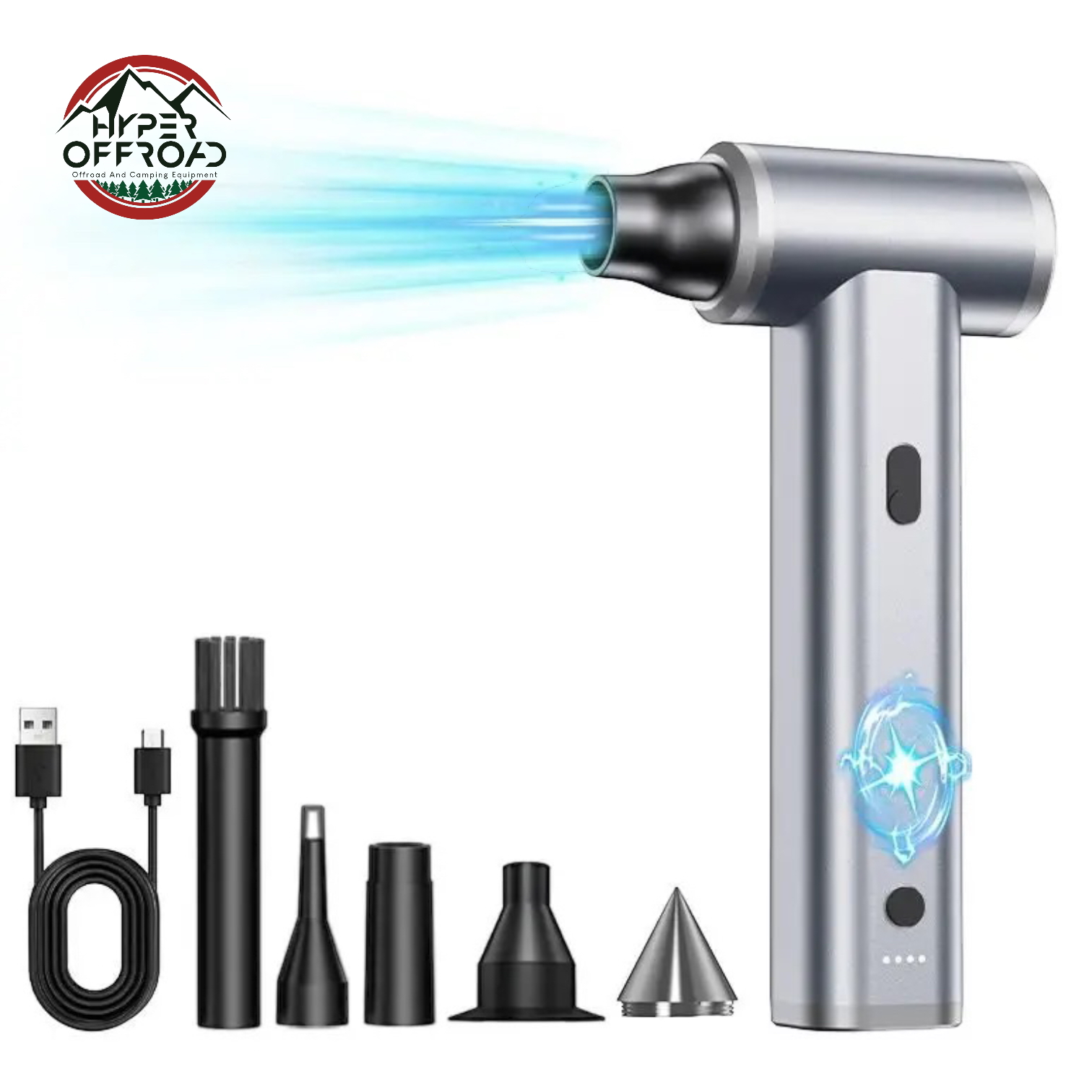 با استفاده از این جت فن میتوانید به راحتی خودرو خود را پس از شستو شو خشک کنید یا میتوانید در سفر آفرودی داخل و صندوق یا لگن بار خودرو خود را در عرض چند ثانیه نظافت و تمیز کنید ، همچنین تصور بفرمایید قصد روشن کردن آتش دارید ! کافیست از جت فن استفاده کنید تا در کمتر از ۱ دقیقه اتش و ذغال خود را اماده استفاده بفرمایید.