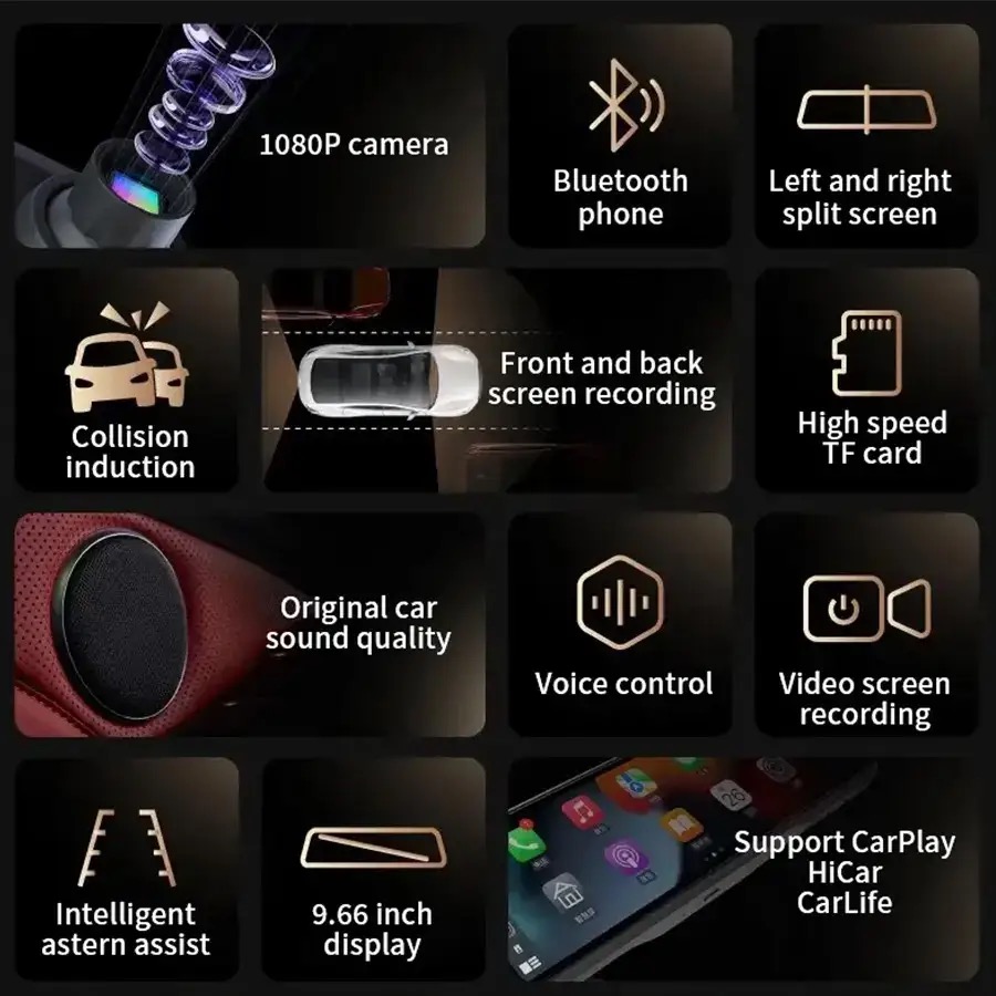 آینه دوربین ثبت وقایع 9.66 اینچ دارای کارپلی مدل MS1