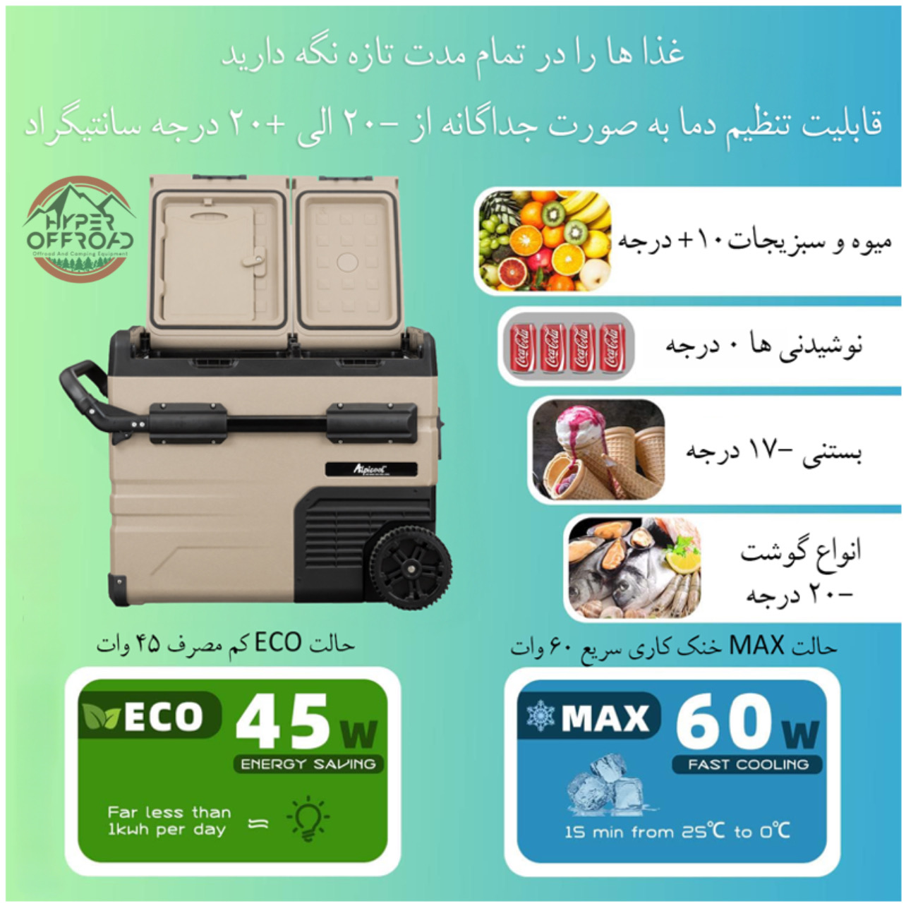 12/24 ولت قابلیت یخچال و فریزر همزمان قابل اتصال به پنل سولار