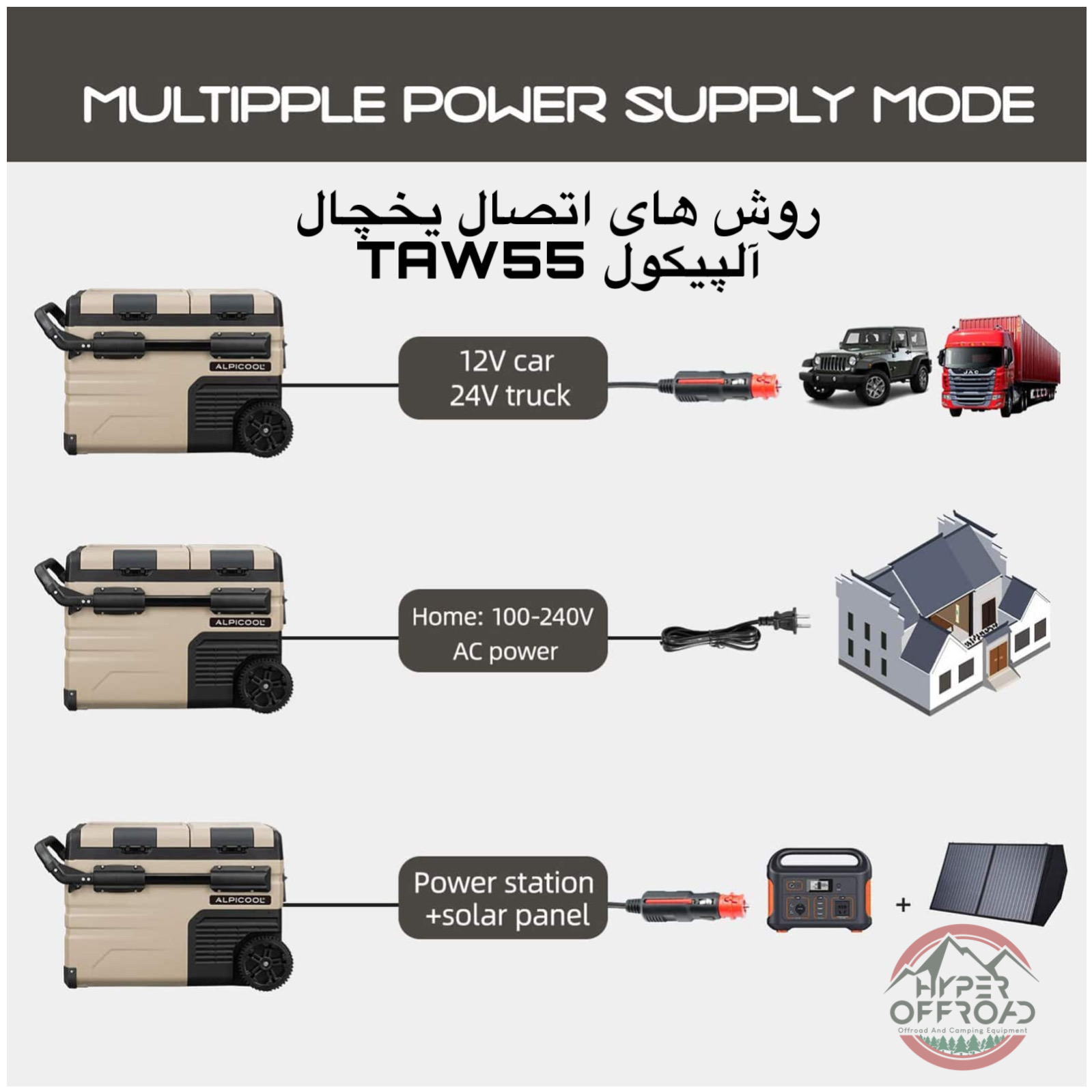 در مجموع باید خدمتتان عرض کنیم برند آلپیکول یکی از قوی ترین شرکت های تولید کننده یخچال های سفری و کمپینگ میباشد و اکثر طبیعت گردان ترجیح به استفاده از این برند معتبر و جهانی را میدهند. با توجه به کیفیت ساخت بالای این محصول و امکانات عالی آن و با توجه به اینکه بسیاری از شرکت های تولید کننده تجهیزات آفرودی یخچال فریزرهای عرضه شده توسط خود به بازار را به صورت سفارشی به شرکت آلپیکول جهت تولید واگذار میکنند به این نتیجه میرسیم بهترین انتخاب خرید یخچال برند آلپیکول میباشد. به عنوان مثال برند معتبر و جهانی پاورولوژی یخچال مسافرتی که در بازار عرضه میکند توسط کمپانی آلپیکول تولید شده و با دو برابر قیمت خود برند آلپیکول توسط پاورولوژی به فروش میرسد! پس در انتخاب برند آلپیکول خاطر جمع باشید! ضمن اینکه مدل TAW55 از برند ALPICOOL یکی از بهترین مدل های تولید شده این شرکت میباشد که با توجه به ظرفیت مناسب و دو محفظه بودن آن مناسب استفاده خانواده نیز میباشد.